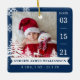 Nouveau bébé statistiques de naissance photo ornement de Noël. Le design comprend deux photos, une photo à l'avant et une à l'arrière. Affichez la photo de votre nouveau bébé. La date de naissance est affichée le long du côté et le nom et la naissance du bébé se trouvent le long du bas. Un arrière - plan bleu marine avec des flocons de neige blancs, des pins et des cerfs est ajouté au bas de la photo. **Veuillez noter que vous pouvez modifier la couleur de l'arrière - plan en cliquant sur modifier à l'aide de l'outil de conception. L'envers dispose d'un endroit pour ajouter une deuxième photo. Des flocons de neige blancs, des arbres et des cerfs sont ajoutés. design par Moodthology Papery