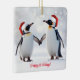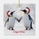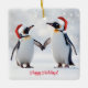 Une paire de pingouins mignons dans les chapeaux de Santa dans la neige avec les mots Joyeuses Fêtes! Un joyeux décor de saison ou un cadeau pour les vacances de Noël.