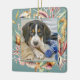 Créez un joli ornement de vacances pour votre animal de compagnie avec ce ornement à thème de plage. La photo carré de votre animal de compagnie est encadrée de coquillages, d'un cheval de mer et de plantes de mer. Le dos de l'ornement a un modèle de texte à personnaliser avec votre texte désiré.