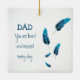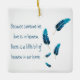 Cet élégant ornement de sapin de Noël en forme de plume bleue constitue un magnifique hommage aux êtres chers disparus. La décoration présente 5 plumes bleues et la phrase 'Parce que quelqu'un que nous aimons est au ciel, il y a un peu de ciel chez nous' De l'autre côté, il est possible de personnaliser et de saisir un message personnel. Tous les styles de police et la couleur de fond peuvent être modifiés en cliquant sur le lien de personnalisation supplémentaire après la personnalisation.