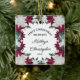 Cet ornement de Noël de gardienne présente un magnifique graphique de poinsettias bordeaux et blancs agrémenté de verdure saisonnière. L'ornement est parfait pour les jeunes mariés qui fêtent leur premier Noël en couple.