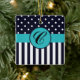 Ce design comprend un petit pois de pois sur le dessus et un motif rayé sur le fond. L'ornement est ensuite accentué par une bordure turquoise avec un logo monogramme au centre. Vous pouvez personnaliser ce produit avec votre propre initiale avec l'outil facile à utiliser.