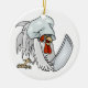 Il vaut mieux écouter le poulet. Il est en charge de la cuisine. Poulet à feu avec un chef casquette et un grand couteau boucher.