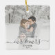 Commémorez le premier Noël de votre mariage avec ce magnifique ornement de gardiens moderne. Le texte gris fusain dit "Notre premier Noël en tant que Monsieur et Madame", avec les mots "Monsieur et Madame" dans un élégant script manuscrit avec des fioritures avant et après. Remplacez l'exemple d'image par votre photo préférée, et ajoutez votre nom de famille et l'année. Un filtre en dégradé blanc permet de faire apparaître le texte.