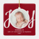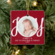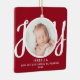 Ce gardien de Noël en première année En tant que parent ornement photo est décoré avec le mot JOY dans la typographie stylisée sur un arrière - plan rouge. Facile à personnaliser avec la photo, le nom et l'année du bébé.