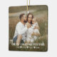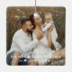 Un ornement de Noël à double face pour célébrer votre premier Noël en famille. Ajoutez une photo de chaque côté de l'ornement carré. Sous un trio de flocons de neige, Our 1st Christmas Together est écrit dans une police rustique. Ajoutez vos noms et l'année aussi !