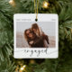 Voici l'ornement parfait de Noël pour le prochain être M. et Mme! Cet ornement personnalisable est la façon parfaite de célébrer votre premier Noël ensemble en couple engagé. Avec un design moderne minimaliste et de la calligraphie manuscrite, ce ornement sera magnifique sur votre arbre. La meilleure partie ? Vous pouvez la customiser avec une photo de votre choix ! Choisissez votre photo de fiançailles préférée ou un moment spécial qui capture votre amour l'un pour l'autre. Cette décoration est une belle façon de chérir vos souvenirs et de célébrer votre amour pendant votre première saison de vacances ensemble.