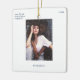 Personnalisez facilement cet ornement en céramique de Noël bleu marine minimaliste et élégant, avec typographie de grunge de machine à écrire et cadre de neige blanche propre, simple et minimaliste. Ajoutez votre photo, noms, texte personnalisé et année de Noël. Un design de Noël cool, simple, sophistiqué et contemporain dans des couleurs modernes noir et blanc, personnalisable dans n'importe quelle couleur et n'importe quelle police. Annoncez votre fiançailles à vos proches de manière élégante ! Premier Noël engagé | Moins de machine à écrire Fiançailles photo ornement en céramique