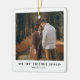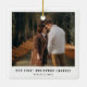 Découvrez l'élégance d'un ornement photo chic et sobre pour la saison des Fêtes. Orné d'une typographie intemporelle qui dit "Notre premier Noël engagé" dans une teinte noire épurée, ce ornement se distingue sur un fond blanc immaculé. Les options de personnalisation vous permettent de customiser la photo, l'accueil et le nom, en ajoutant une touche unique. Faites une déclaration élégante avec ce design de Noël minimaliste et moderne, annonçant votre fiançailles à ceux qui vous sont chers. L'image illustrée sert d'espace réservé, prêt à être remplacé par votre propre photo chère.