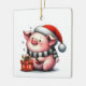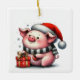 Illustration fantasque d'un cochon mignon dans un chapeau de Père Noël avec un cadeau emballé imprimé sur un ornement en céramique commémorant le premier Noël du bébé. Le texte arrière peut être modifié. L'IA a aidé graphisme acheté à des fins commerciales. Oeuvre : Phare de RedHeron