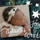 Premier Noël dans la typographie classique et simple serif. Ajoutez une photo et un nom personnalisés pour bébé.