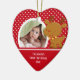 L'ornement mignon de Noël de photo comportant un renne adorable avec un arrière - plan pointillé par polka rouge, ajoutent juste VOTRE PHOTO ! Perfectionnez pour le premier Noël et le deuxième Noël. Un cadeau de Noël de merveille sure à priser depuis de nombreuses années pour venir. graphiques de ©zenware