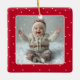 Commémorez le premier Noël de votre bébé miracle avec ce joli ornement photo avec un pois rose blanc sur le rouge avec une photo sur un côté et votre texte sur le dos.