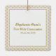 Beige de communion avec le pois d'or. Cette belle et élégante première conception de sainte communion est décrite à un point de polka d'or et à un arrière-plan beige avec délicatement une croix d'or d'endroit. Aimez les grands souvenirs de la première sainte communion de votre enfant avec cette belle conception. Vérifiez les premiers accessoires de sainte communion, papeterie, et cadeaux assortis de communion.