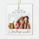Demandez à votre meilleur ami, soeur ou cousin d'être votre demoiselle d'honneur avec cette magnifique photo minimaliste de 2 côtés ornements d'arbre de noël, Avec photo de vos meilleurs amis, posant la question et au dos une autre photo avec un message modèle, les styles de police et la couleur arrière - plan peuvent être changés en cliquant sur le lien plus loin sur la personnaliser après la personnalisation.