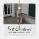 Chiots Premier ornement de Noël. Concevez à terme votre photo préférée, empreinte de patte d'accent décoratif avec le coeur renversé en lettres rouges et blanches.