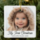Retro Script Baby's First Christmas Photo Ornament en céramique