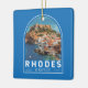 Rhodes conception de déplacement vectoriel rétro. Rhodes, la plus grande des îles du Dodécanèse de Grèce, est connue pour ses stations balnéaires et ses ruines antiques.