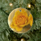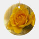 Ce bel ornement de vacances présente une composition en natures mortes d'une rose jaune exquise sur un arrière - plan beige. Les pétales sont de couleur allant du jaune pâle à l'or en passant par une orange profonde.