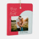 Ornement En Céramique Rouge & Rose Gold Photo moderne Noël Famille Cera
