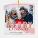 Ornement En Céramique Rouge rose Joyeux Noël Script Famille Photo