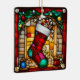 Red Stocking Faux Tissu Verre Personnalisable en céramique Ornement Ajoutez une bonne humeur de vacances à votre arbre avec cet ornement en céramique personnalisable en faux verre de Red Stocking. Ce design AI numériquement édité présente un bas de Noël rouge festif entouré de riches tons de bijoux, créant l'aspect intemporel de l'art en vitrail. Personnalisez-le avec des noms, des dates ou un message spécial de vacances pour créer un souvenir significatif ou un cadeau réfléchi pour les amis, la famille ou les clients. Parfait pour apporter un charme de Noël cosy et nostalgique à votre décor cette saison.