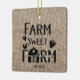 Rustic Farmhouse Style Christmas Ornament features country typography reading FARM SWEET FARM with hearts, barn and a rooster. Your family name and year your farm (home) was established is also featured. The perfect ornament for newlyweds, family, housewarming or anyone who loves the farmhouse style.