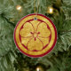 Votre sapin de Noël a l'air super avec ce ornement en céramique avec ce fameux Sakai Mon japonais en faux or. L'arrière - plan est rouge profond. Sakai mon du shogunat japonais. Le mon montré dans le jeu de samouraï de guerre totale. Le mon est un emblème pour désigner une famille, un clan ou même une organisation. Le kamon est utilisé spécifiquement pour identifier une famille. Le mon est semblable aux armoiries de la tradition héraldique européenne. Bien qu'il y ait une grande différence, le mon reste propre et minimaliste dans le design. Les crêtes européennes ont tendance à devenir très compliquées en combinant d'autres crêtes familiales au fil des générations. Mon et Kamon sont généralement conçus à l'aide d'une rondelle contenant une image abstraite et stylisée d'un objet. Cet objet peut être un plante, un animal, un outil ou tout ce que vous voulez. Cela mènera à une grande quantité de catégories contenant de nombreuses variantes d'un objet particulier. Bien que nous finissions avec des milliers de lun, grâce à son design minimaliste et même moderne, mon et kamon ne sont jamais ennuyeux. Ils ont l'air absolument beaux sur n'importe quel article.