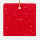 Minimaliste Bright Red Photo Snowflakes Christmas keepsaké Arbre céramique ornement avec votre photo personnalisée dans un cadre moderne et élégant de neige, le texte du script Joyeux Noël avec swashes de calligraphie cardiaque, noms personnalisés et année.