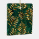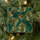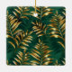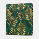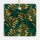 Seamless pattern of gold, jewelry, shiny fern branches and leaves on green, woodland, textured background. Golden fern.