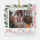 Ornement En Céramique Simple Elegant Script Family Photo Merry Christmas