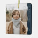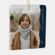 Cet ornement moderne de Noël simple présente un bord bleu marine ondulé tendance ainsi qu'une grande photo et une pièce pour le texte personnalisé et l'année. Cette décoration de vacances photo personnalisée est une excellente façon de commémorer un événement spécial, une photo de famille, un nouveau bébé et plus encore. Ce design ornemental original de Lea Delaveris Design peut être entièrement customisé avec votre photo et texte et est également disponible en d'autres couleurs. L'avant et l'arrière de cet ornement avec son bord de marine et son texte blanc correspondent. Trouvez des designs plus tendance dans ce style de bord ondulé moderne dans la collection!