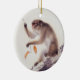 Un singe macaque japonais assis sur un vieux persimmon, tirant la branche pour atteindre le fruit. Le visage du singe est unique et chaleureux. Couleur sur soie de l'artiste japonais Hashimoto Kansetsu, simplement intitulé, "Singe".