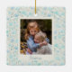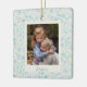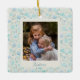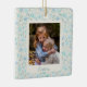 Cet élégant ornement en céramique de sapin de Noël présente un joli motif floral de fleurs mignonnes peintes avec des aquarelles dans les tons bleus. Ajoutez votre photo préférée et customisez le texte. Super idée cadeau !