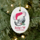 Mignonne petite souris dans le chapeau de Santa avec la photo de votre bébé à l'envers. Nom et date personnalisés.