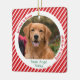 Souvenez-vous de votre meilleur ami avec un ornement de Noël personnalisé présentant un motif classique de canne à bonbons rouge et blanc et un texte vert. Ce souvenir de vacances moderne et mignon de mémorial pour animaux de compagnie est une façon réfléchie de célébrer la vie de votre animal de compagnie et de garder leur mémoire proche pendant les vacances. Parfait pour un ornement de photo de chien ou un cadeau de souvenir de perte d'animal de compagnie, cela fait un hommage touchant à Noël au Ciel pour tout amoureux des animaux. Un bel ornement de sympathie pour honorer un animal de compagnie bien-aimé qui est à jamais dans nos cœurs - un souvenir durable qui apporte du réconfort et de l'amour à votre décoration de Noël.
