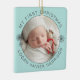 Ornement personnalisé de premier Noël de bébé, souvenir moderne avec lettres courbes et motifs de flocons de neige avec votre photo préférée.