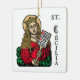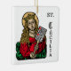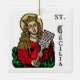 Vous avez le choix entre ajouter un arrière - plan coloré à ce bel ornement de Noël ou le laisser tel quel ! + St. Cecilia avec Hymn Board est une version colorée moderne d'une ancienne coupe de bois du Nuremberg Chronicle (Liber Chronicarum). Écrit par Hartmann Schedal, The Chronicle est un récit illustré et encyclopédique de l'histoire du monde à la fin du 15ème siècle (et au-delà du jugement Dernier). Son contenu est dérivé de la mythologie, de la Bible et de diverses Chroniques médiévales. Il a été publié dans la ville de Nuremberg par Anton Koberger en juillet 1493 en latin et, quelques mois plus tard, en décembre, en allemand vernaculaire. La Chronique est particulièrement remarquable pour son utilisation sans précédent d'illustrations : 645 coupes de bois originales ont été produites pour sa publication. Alors que de nombreuses coupes de bois ont été réutilisées plus d'une fois dans le texte avec les légendes simplement changé, néanmoins, le volume se vante 1089 images en toto. Certaines copies ont des illustrations contemporaines aux couleurs de la main. + Dans les éditions originales de The Chronicle, l'image de St. Cecilia est à gauche, une erreur de l'artisan qui a coupé le bloc de bois après le design original de l'artiste. Ainsi, le texte "lit" en arrière. Nous avons retourné l'image de sorte que St. Cecilia se tourne à droite et l'écriture sur le tableau Hymn est correctement représentée même si illisible. + Malgré son voeu privé de virginité, St. Cecilia a été forcée dans un mariage arrangé—jamais consommé—avec un païen nommé Valérian. On dit que le jour de son mariage, St. Cecilia "chantait dans son coeur au Seigneur" au lieu de se réjouir avec ses invités. En conséquence, bien avant d'être associée à des organes dans l'art, une tradition iconographique qui est née en Italie au 14ème siècle et a été basé peut-être sur une lecture erronée d'une ligne dans son Passio, St. Cecilia a été associé au chant et chanteurs. C'est pourquoi cette illustration allemande du XVe siècle lui donne un tableau Hymn tenu à la main comme attribut. Comme ici, ces tableaux portatifs portaient à l'origine les lignes d'ouverture d'un hymne qui serait chanté pendant un service religieux. Les tableaux Hymn d'aujourd'hui, bloqués ou accrochés au mur, sont affichés avec des nombres qui coïncident avec l'hymne d'une congrégation donnée. + Fête : 22 novembre + Crédit photo (St. Cecilia avec tableau de l'Hymne) : Cette version colorée du bois de Nuremberg est un Saints_Amany Exclusive (SAE).