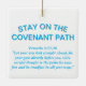 Stay on the Covenant Path for faithful LDS Christians. Design shows a walking path next to still waters, leading to the mountain which represents strength and refuge of God and Heavenly Father's eternal plans for us. Features Proverbs chapter 4 verses 25 and 26.