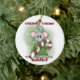 Une petite souris grise avec un grand sucre de canne rayé rouge et blanc et le texte qui dit "Sucre de canne Addict" sur un ornement de vacances de garde qui est juste trop mignon!