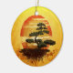 Beautiful illustration of a Japanese bonsai tree against a colorl sunset. Very tranquil and peaceful image.