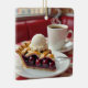 Passez un Noël très cher. Noël et tourte à tarte. Un joli ornement avec une illustration de tarte à la cerise avec crème glacée à la vanille sur le dessus avec une tasse de café chaud au diner.
