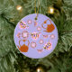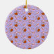 Tea Time Ornament de Kristie Hubler, avec une théière de motif de thé de porcelaine, teacup, assiette, avec fruits et motif feuille, plus une bouilloire en cuivre. Le motif chinois a des baies, une pêche et une tranche de pommes avec des feuilles ondulants.