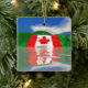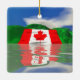 Ornement avec mon image originale d'un drapeau canadien géant sur des collines vertes, reflété dans le lac.