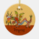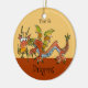 L'illustration d'un dragon de dessin animé fantaisiste sur un ornement est en violet, rose, marron, avec un vert rayé en dessous. Vous pouvez modifier du texte pour créer votre propre cadeau personnalisé. Besoin d'aide, envoyez un courriel à lilly@lillyarts.com
