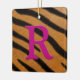 This ornament has a hot pink monogram over tiger stripes. Customize the back with your own message.