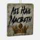 Pour les fans théâtrales du jeu écossais par Shakespeare, cette conception a la citation "toute la grêle Macbeth" avec une image sale d'une couronne.