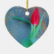 Ornement En Céramique Tulipe rouge sur ardoise gris bleu