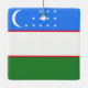 Celebrate your heritage or commemorate a special trip with this beautiful Uzbekistan flag ceramic ornament! The design features the vibrant blue, white, and green horizontal stripes of the Uzbekistan flag, accented by the red fimbriations and the iconic crescent moon and twelve stars. Whether it’s hanging on a Christmas tree, displayed in a window, or used as a year-round decorative accent, this ornament is a meaningful way to show your Uzbek pride.