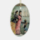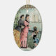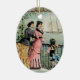 De belles dames habillées et une petite fille douce regardent un voilier sur l'eau. Salutation : Bon Voyage, Image du revers d'une carte publicitaire victorienne.